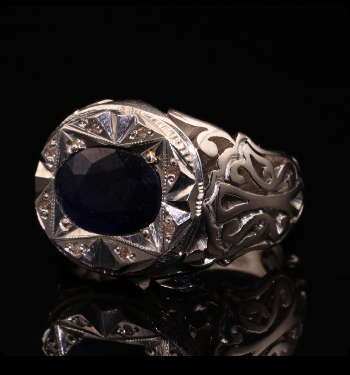 انگشتر نقره مردانه یاقوت کبود آفریقایی⚜️